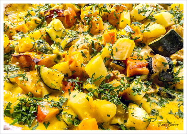 mit Zucchini, Kartoffeln und Putenfleisch