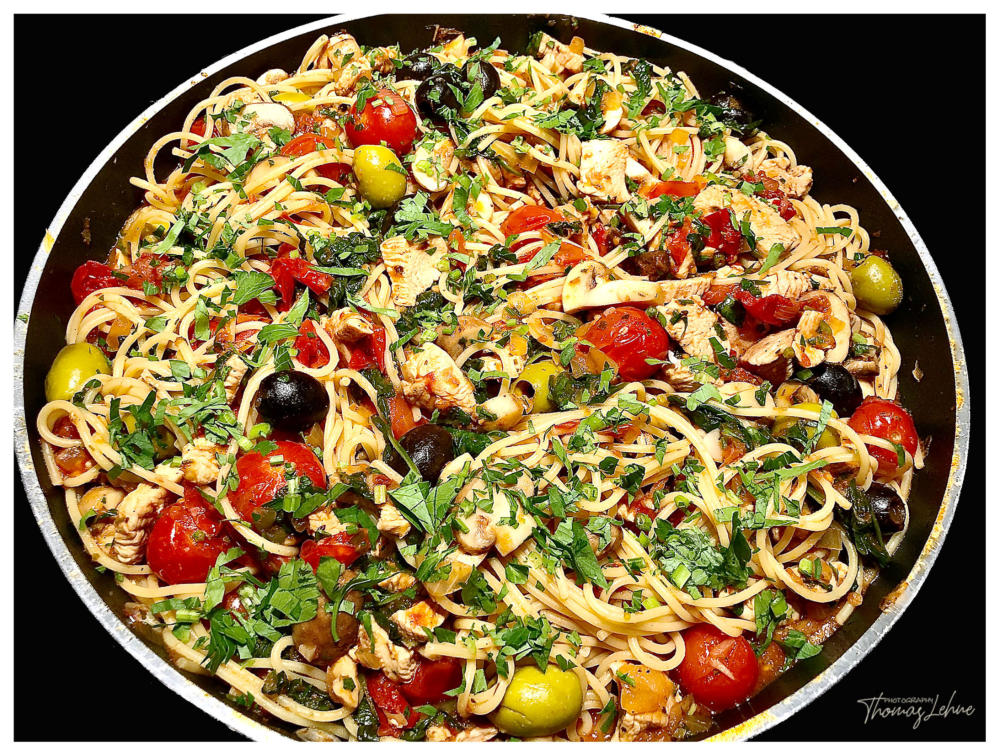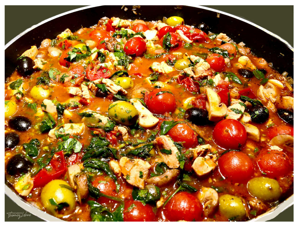 TOMATEN UND OLIVEN UND PUTENFLEISCH